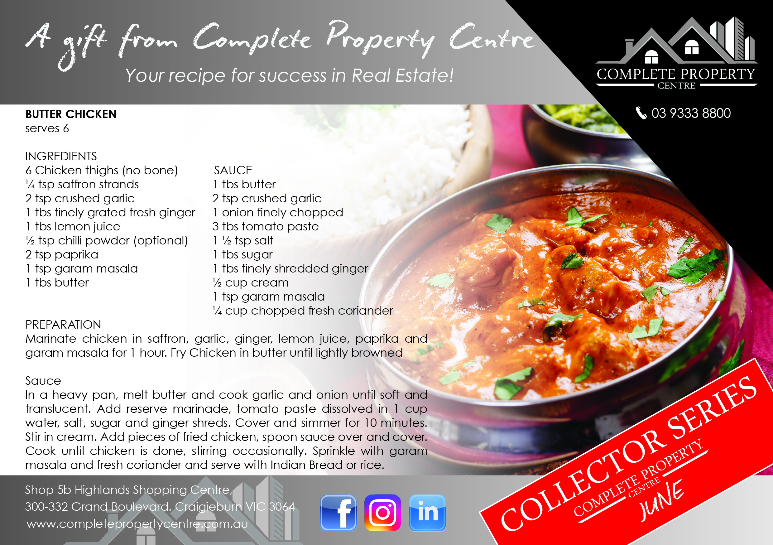 RECIPE OF THE MONTH - JUNE 2017 #1 Posted on 09 Jun 2017 Lauren Vicary [4] BUTTER CHICKEN! Continue Reading →